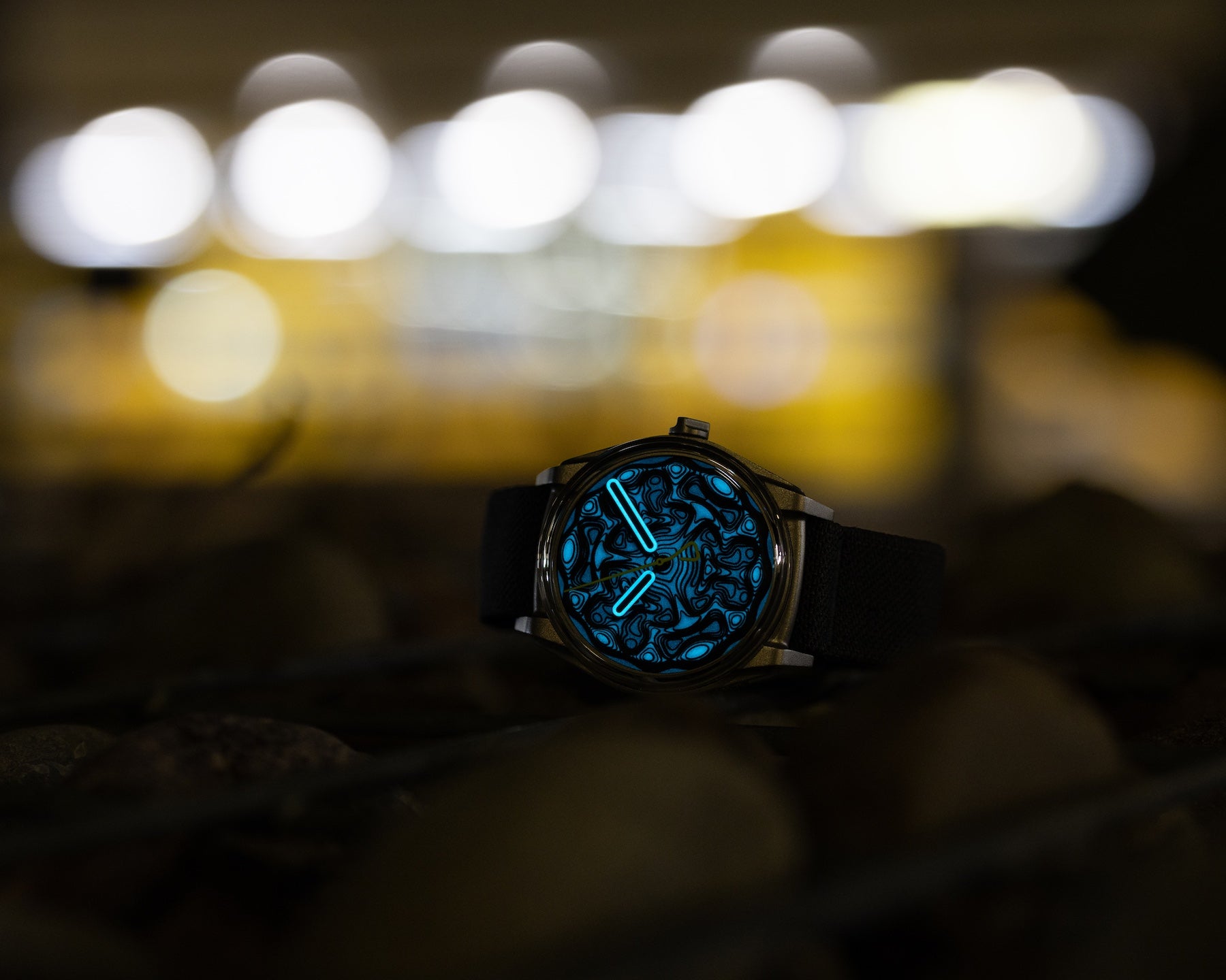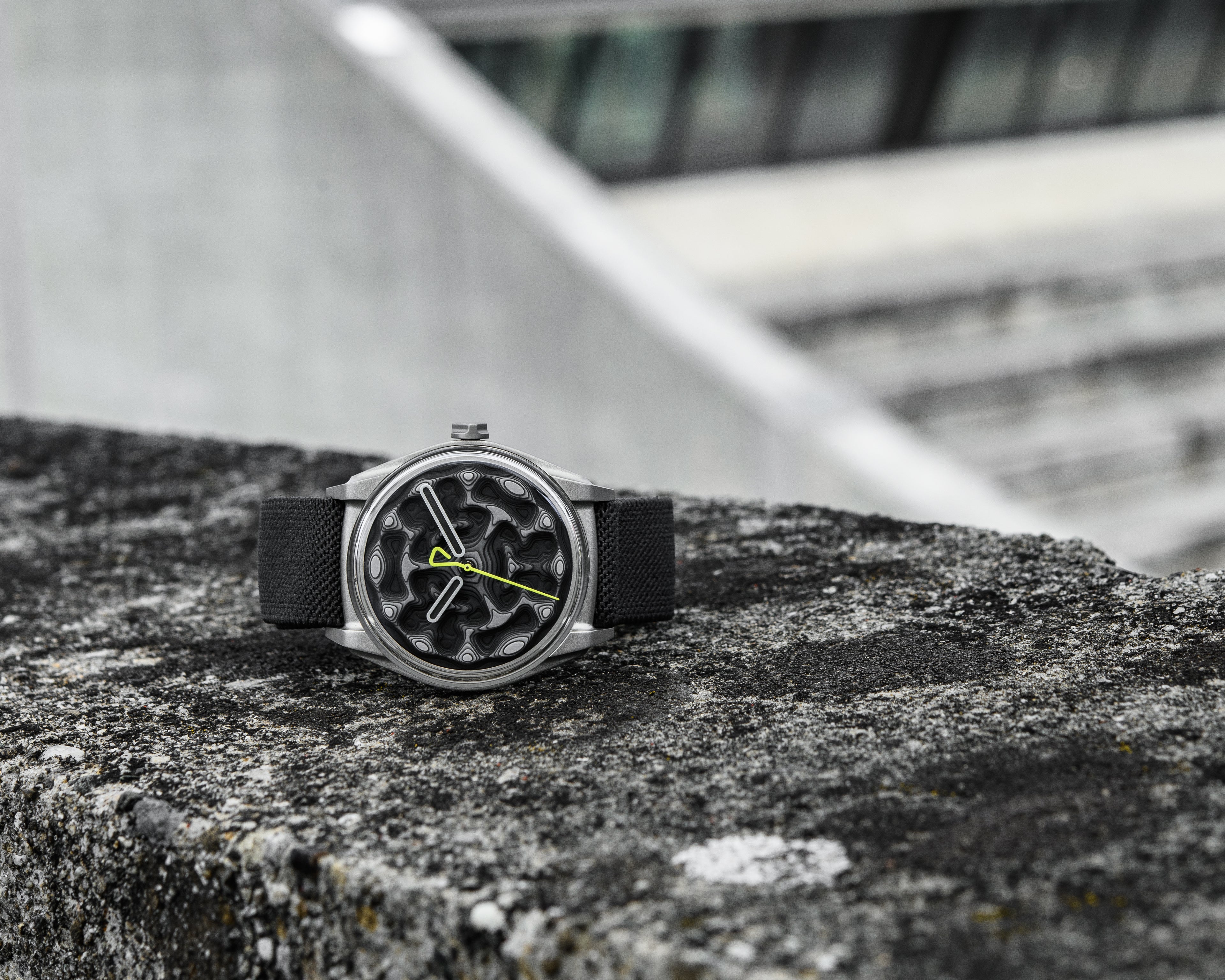 Like a hypsometric map, the idea was to highlight and dramaticize the three-dimensional nature of the topographical dial by having each level painted in a slightly different tone. The highest peaks os the dial, representing the twelve hour markers, are hand-painted in a light grey color, then each