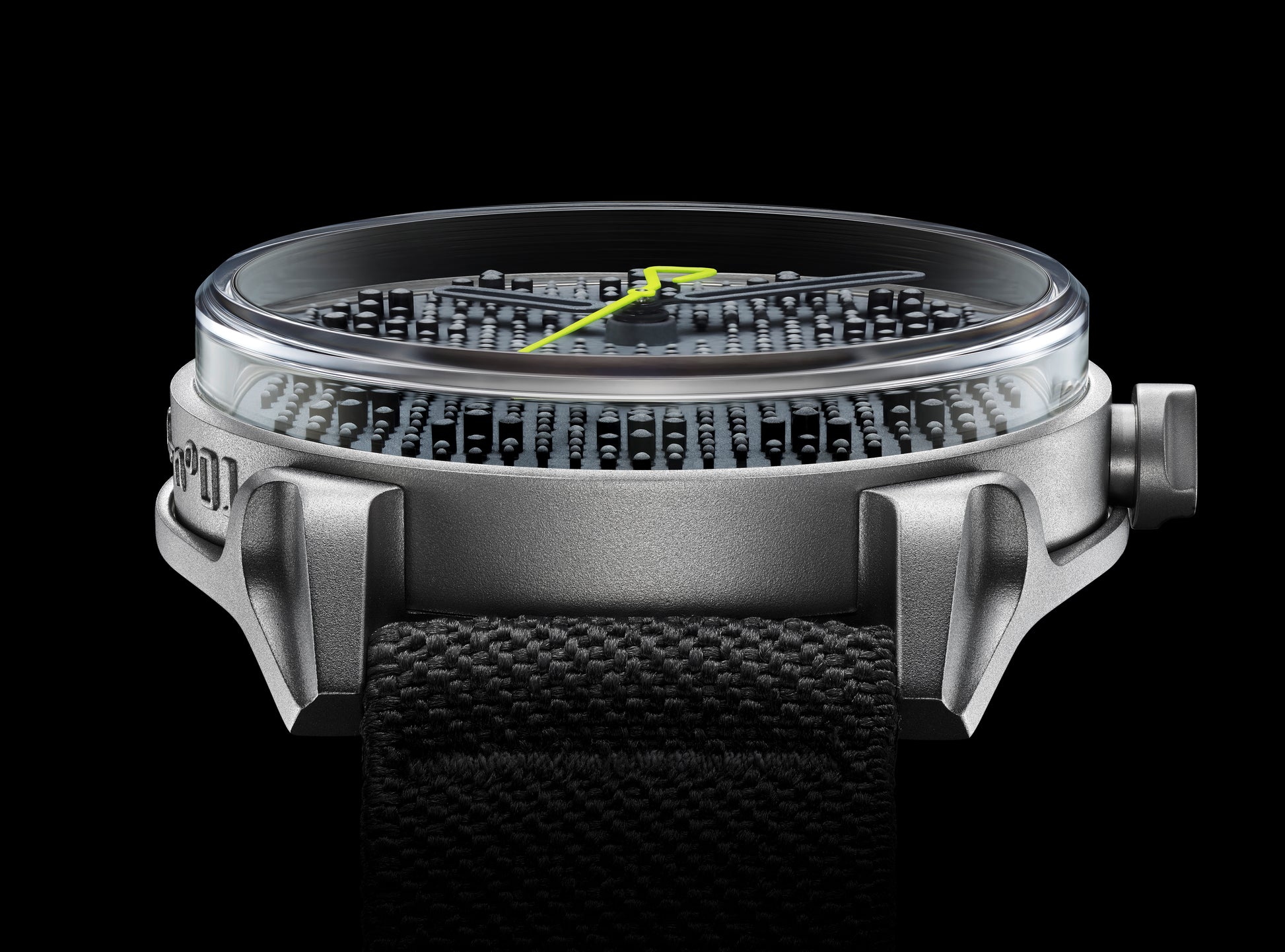 It’s simply die-cast steel in all its industrial glory – and quite the antithesis to the neatly polished and delicately satin-brushed finishes you’d find in just about every other watch.