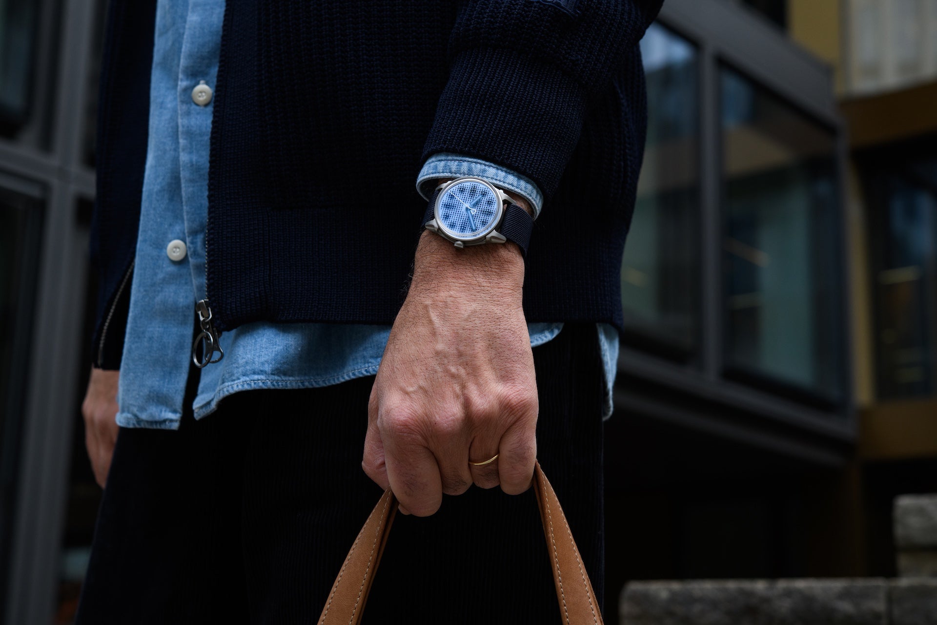 Ever since Projekt 01 was introduced, our friends and customers have been clamoring us to do something in blue. And while we’re always open to ideas and suggestions, we’re also quite stubborn. From black with fluorescent accents to a cement-like grey and finally violet, we’d like to think that we’ve been experimental with Projekt 01, as we truly believe the core design can be interpreted in vastly different ways. But we also understand that you don’t have to always be edgy to stand out. And so, Projekt 01 Variant G explores a more restrained play of tones, amplified by contrasts, volumes and textures to honor a color that is as sartorial as it is horological. And like every kollokium to date (though we promise this won’t always be the case), you can expect a lot of Super-LumiNova.