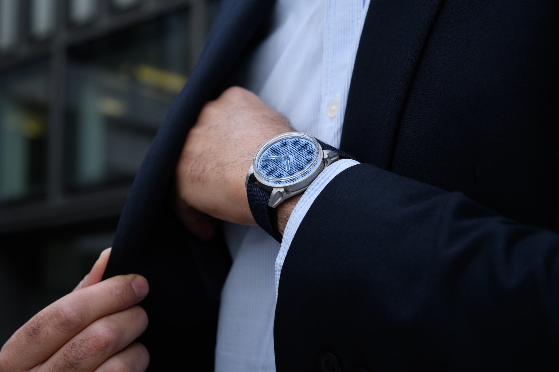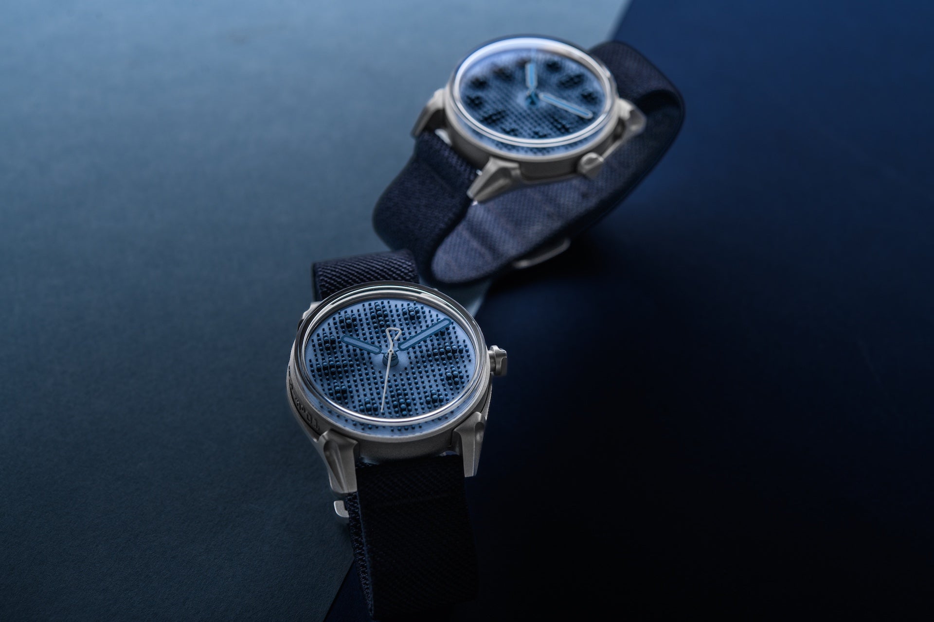 Ever since Projekt 01 was introduced, our friends and customers have been clamoring us to do something in blue. And while we’re always open to ideas and suggestions, we’re also quite stubborn. From black with fluorescent accents to a cement-like grey and finally violet, we’d like to think that we’ve been experimental with Projekt 01, as we truly believe the core design can be interpreted in vastly different ways. But we also understand that you don’t have to always be edgy to stand out. And so, Projekt 01 Variant G explores a more restrained play of tones, amplified by contrasts, volumes and textures to honor a color that is as sartorial as it is horological. And like every kollokium to date (though we promise this